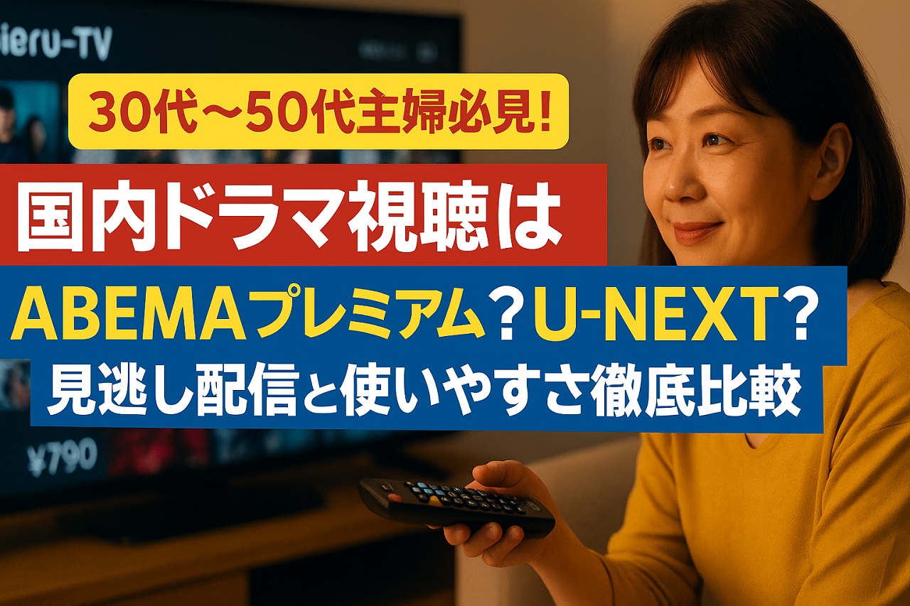 30代〜50代主婦必見!国内ドラマ視聴はABEMAプレミアム?U-NEXT?見逃し配信と使いやすさ徹底比較