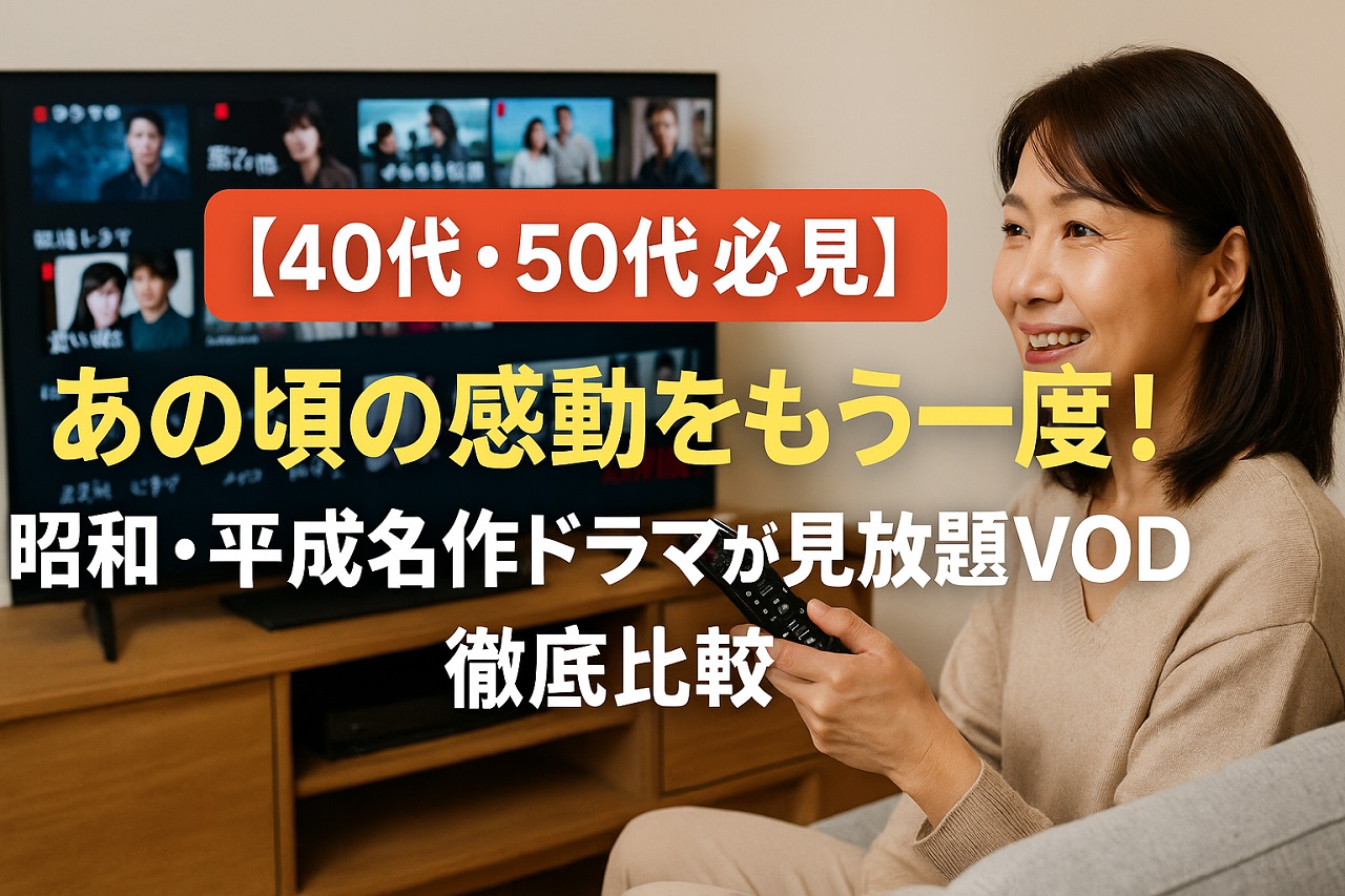 今やVOD(動画配信サービス)なら、懐かしい昭和・平成の名作ドラマを好きな時に見放題で楽しめる時代。再放送を待たずに、もう一度”あの感動”と出会えるチャンスです。
