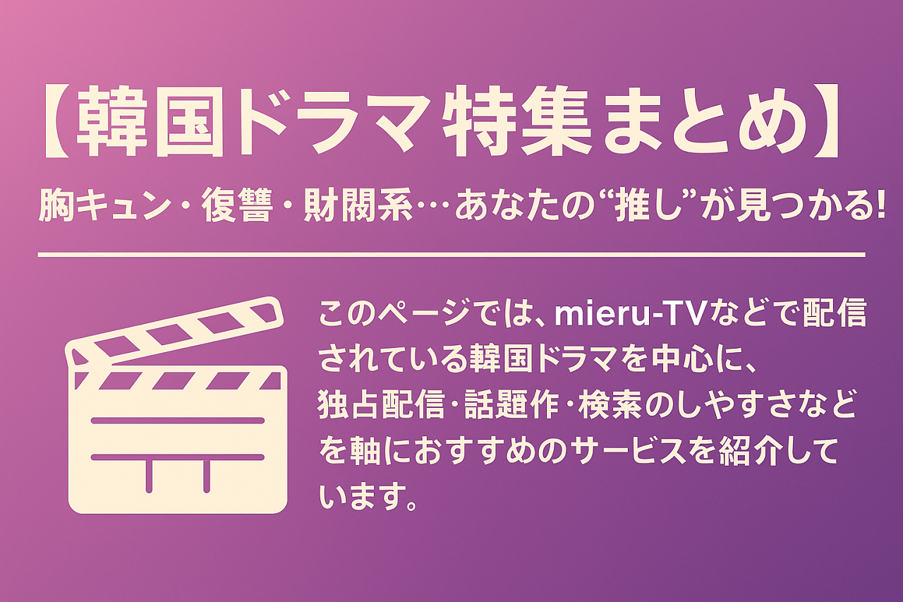 このページでは、mieru-TVなどで配信されている韓国ドラマを中心に、独占配信・話題作・検索のしやすさなどを軸におすすめのサービスを紹介しています。