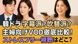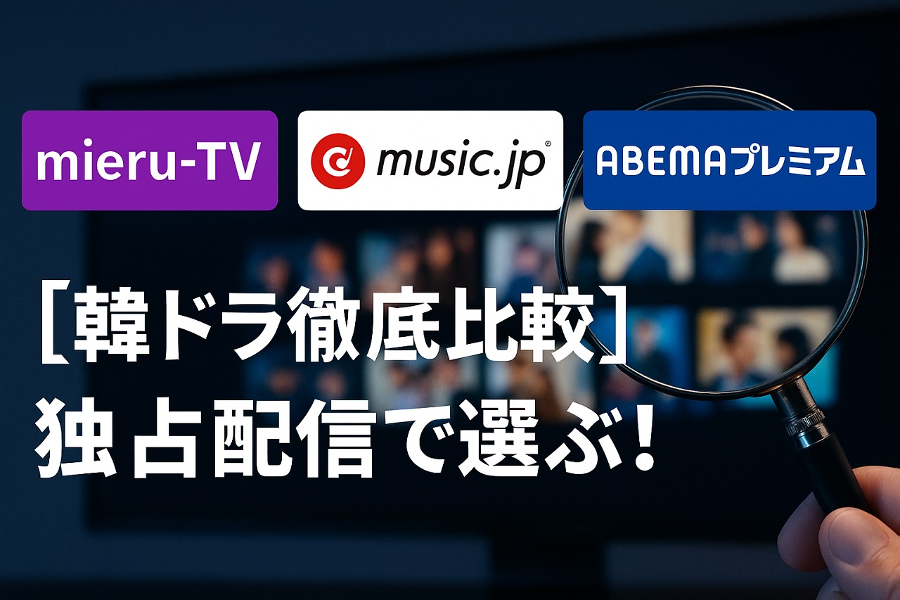 韓国ドラマ好きの主婦層に大人気の動画配信サービスを徹底比較します!「mieru-TV」「music.jp」「ABEMAプレミアム」を中心に、NetflixやU-NEXTも含めて独占配信やコスパ、視聴機能について解説します。