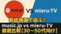 music.jpはポイント制を採用し、新作や独占タイトルを数多く取り揃えています。初回30日間無料+1,600円分のポイント付与、継続利用すると毎月5,458円分のポイントが使える高還元コースもあり、たくさん視聴する方には非常にお得です。