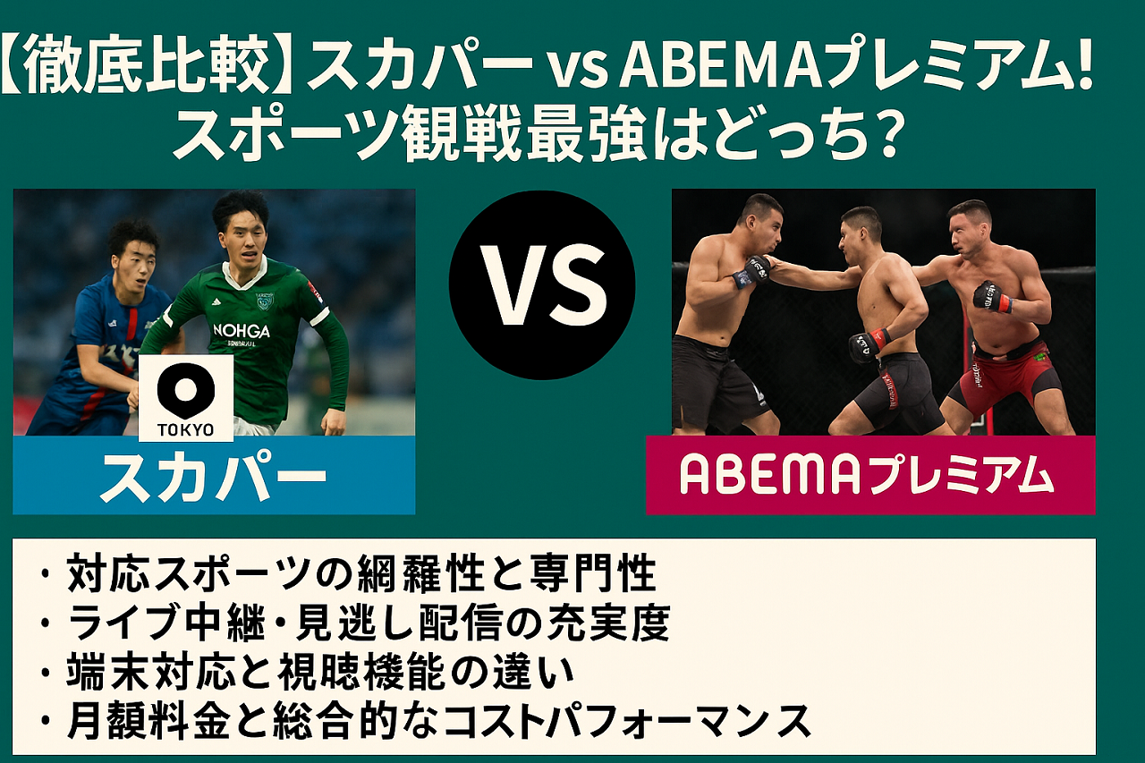 コスパ重視ならABEMAプレミアムが優位ですが、Jリーグやプロ野球を「全試合見たい」場合はスカパーの専門セットが確実です。